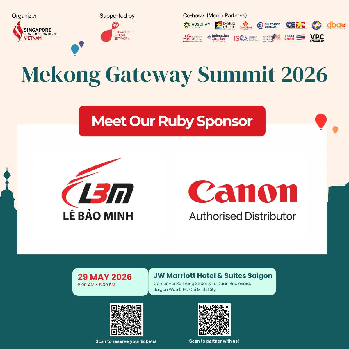 The Singapore Chamber of Commerce Vietnam – SingCham Vietnam (formerly Singapore Business Group HCM City Chapter – SBG HCMC) is a non-profit organization established on August 9th 1992 by a small group of Singaporeans doing business or working in Vietnam.