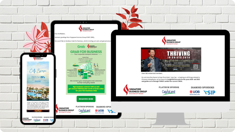 Using marketing email is one of the most effective approaches to promote your products/services and enhance your brand awareness. The emails will be circulated to over 7,000 subscribers nationwide including SingCham Vietnam members.