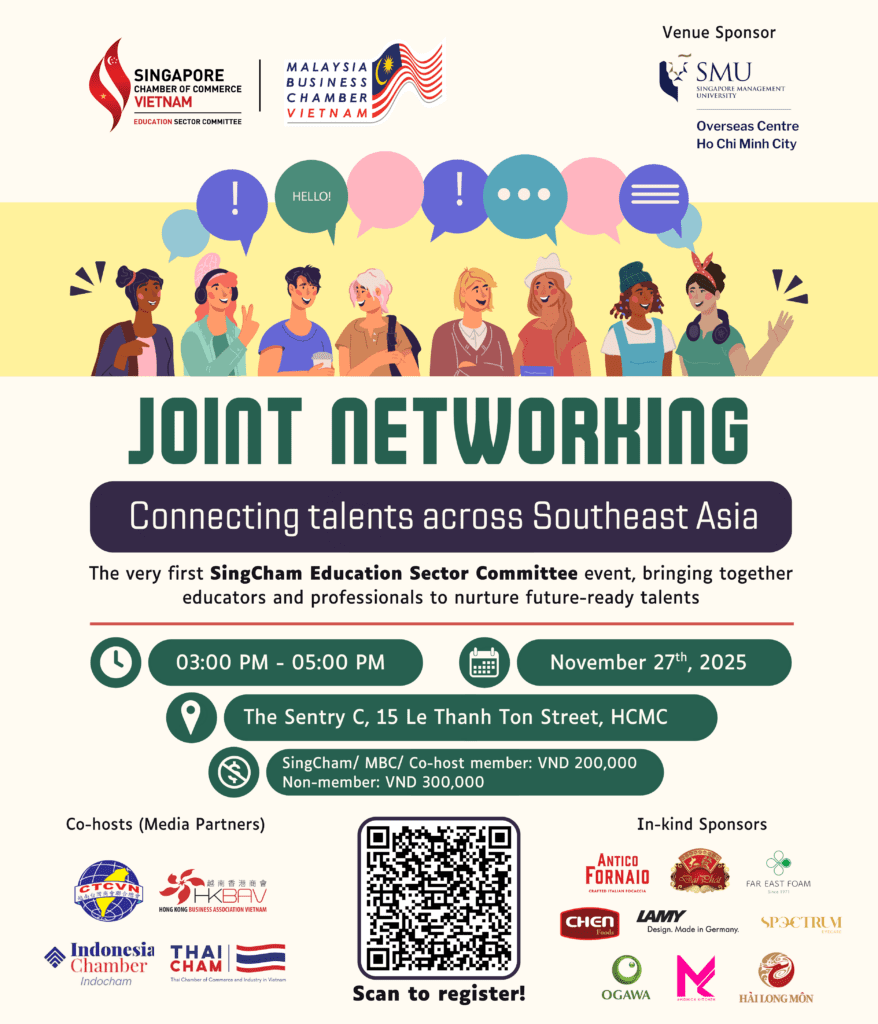 The Singapore Chamber of Commerce Vietnam (SingCham), in collaboration with the Malaysia Business Chamber Vietnam – MBC, is excited to host a joint networking event – marking the first official gathering of the SingCham Education Sector Committee!