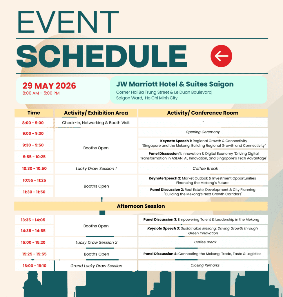 As a SingCham-led initiative, the Summit serves as a strategic platform bridging Singapore with the Mekong business ecosystem, enabling cross-border collaboration and meaningful business connections.