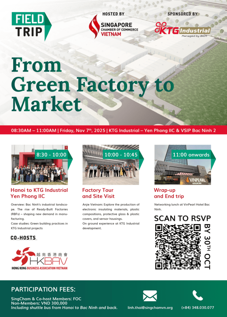 SingCham’s valued members and partners are invited to join an exclusive field trip to explore Bac Ninh, one of Northern Vietnam’s key industrial zones. This visit offers valuable insights into Vietnam’s fast-growing manufacturing landscape, while also creating opportunities for knowledge exchange and networking.