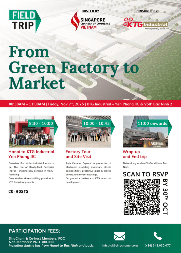 SingCham’s valued members and partners are invited to join an exclusive field trip to explore Bac Ninh, one of Northern Vietnamβs key industrial zones. This visit offers valuable insights into Vietnamβs fast-growing manufacturing landscape, while also creating opportunities for knowledge exchange and networking.