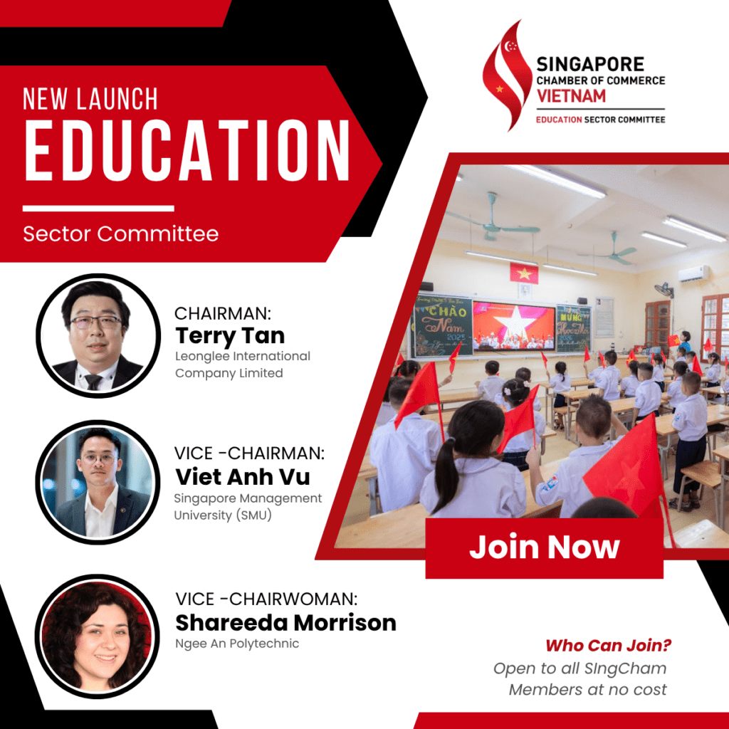 TheĀ current Members List of SingCham Vietnam Education SC (Updated as of December 2025) ============================= Chartered Proposal (by Mr. Terry Tan, Chairman, proposed on July 31st, 2025) OVERVIEW The proposed Education Sector Committee under the Singapore Chamber of Commerce Vietnam aims to foster stronger VietnamāSingapore collaboration in education. The Committee will serve as a dedicated platform […]