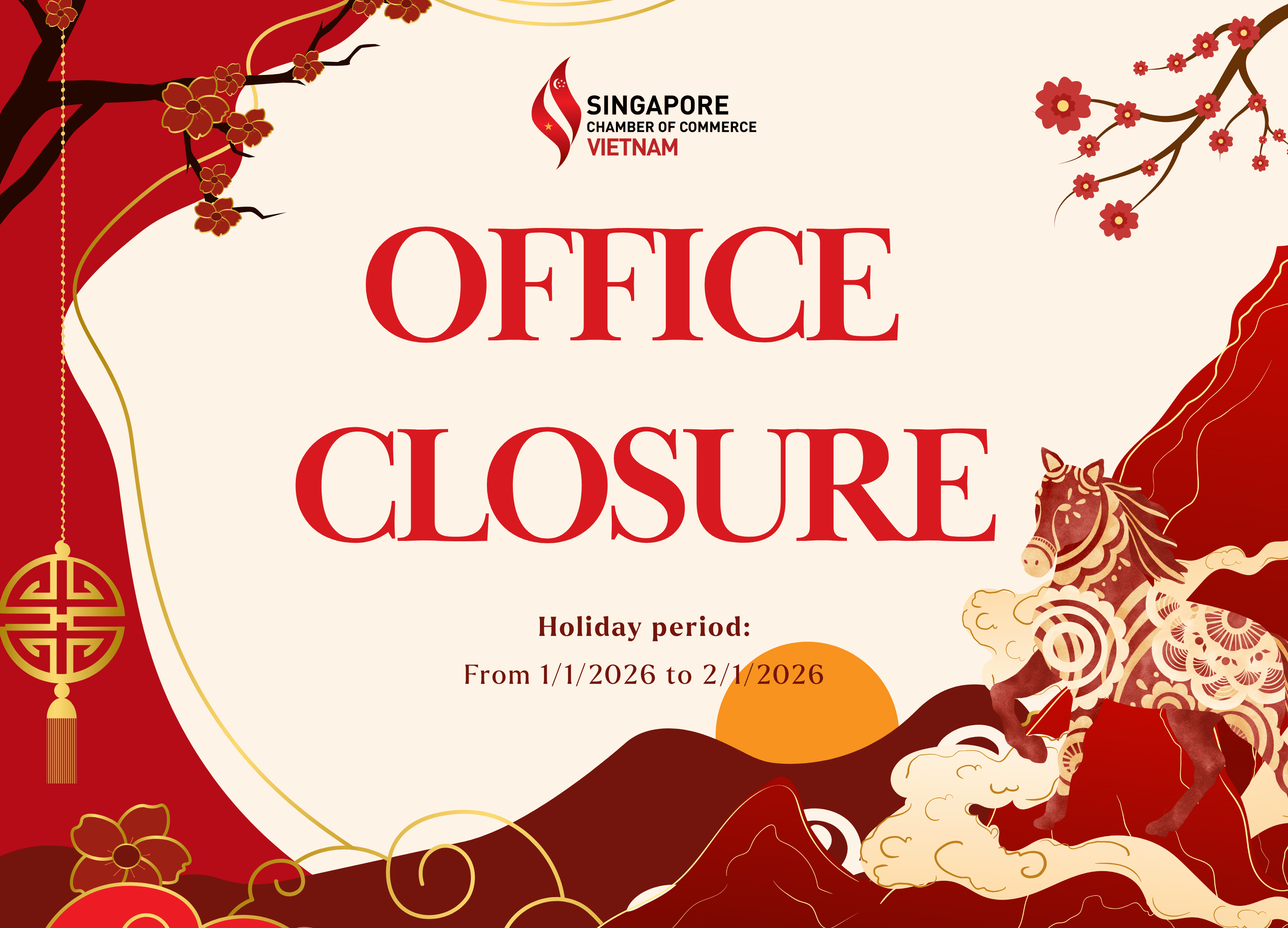 In celebration of the New Year 2026, please be informed that SingCham office will be closed for the New Year