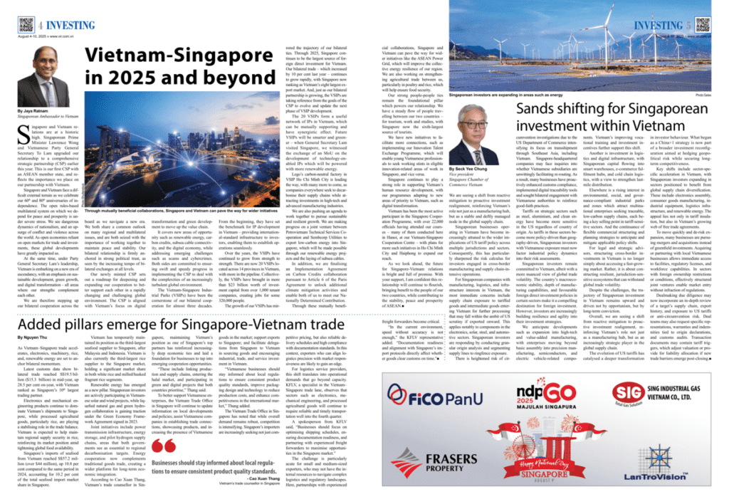 Our Vice President, Mr. Seck Yee Chung (Chung Seck), recently spoke with Vietnam Investment Review on how Singaporean businesses are responding to evolving trade dynamics and global tariff realignments – and why Vietnam continues to be a strategic destination for forward-thinking investors. From enhanced supply chain traceability to ESG-compliant industrial zones, Singaporean companies are not […]
