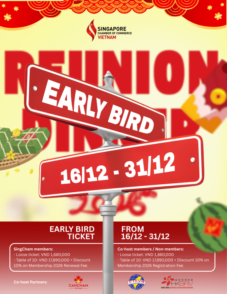 SingCham Reunion Dinner 2026: “Sprint as Horses” Early Bird phase is officially OPEN (Dec 16th – Dec 31st)! While the Super Early Bird phase closed last night, we are excited to offer continued strategic value for your business: New Ticket Price Rate (applied from Dec 16th – Dec 31st): SingCham members: – Loose ticket: VND 1,680,000– […]