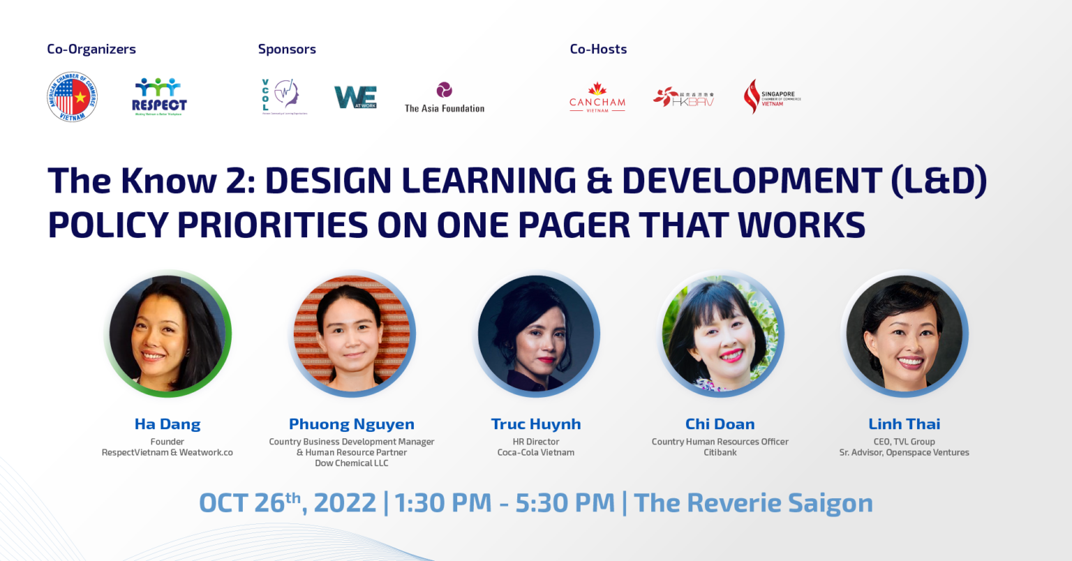 THE KNOW SERIES,which is co-organized byRespect VietnamandAmCham Vietnam, co-sponsored byWEATWORK,includes the following 05 workshops, which are organized in different cities in Vietnam & also online: