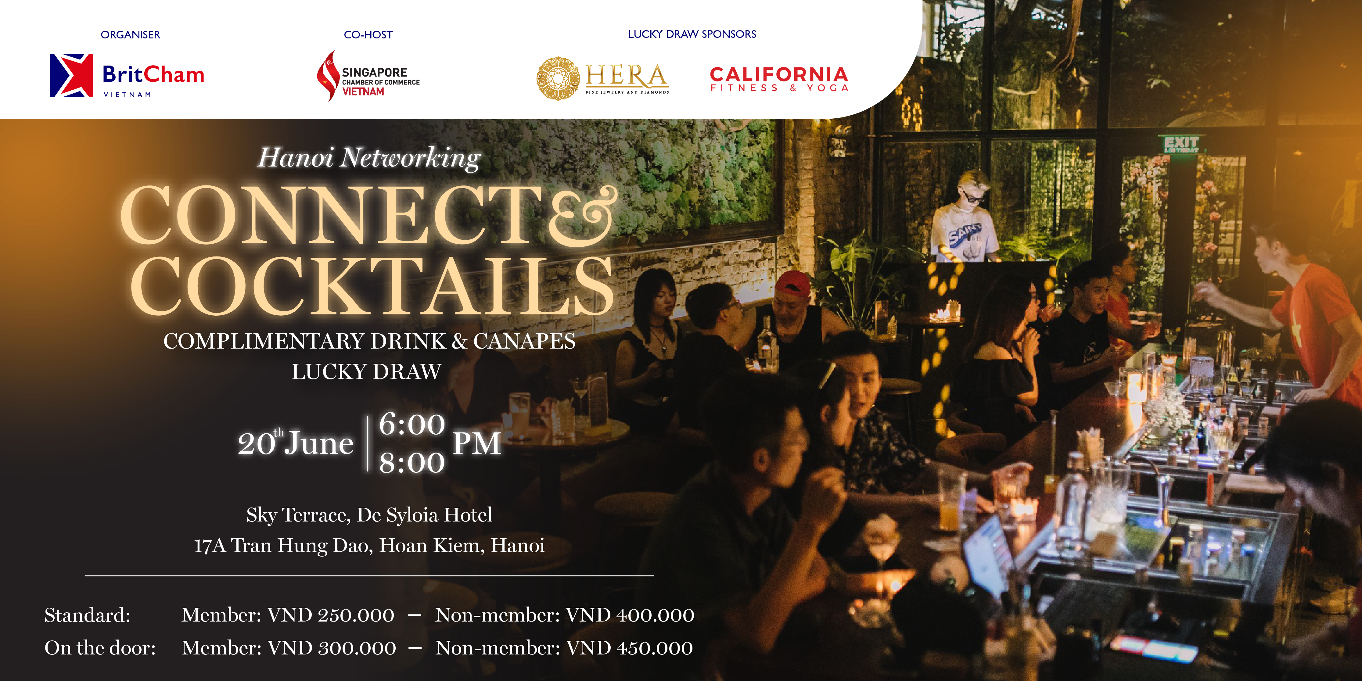 Singapore Chamber of Commerce Vietnam (SCCV) is pleased to co-host BritCham Hanoi Networking: “Connect & Cocktails Networking” this June the details are as follows: