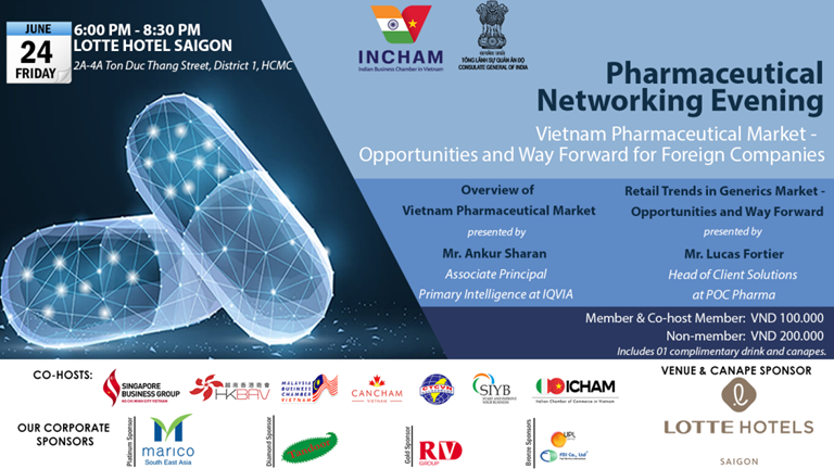 Singapore Business Group HCMC (SBG), in collaboration with InCham, will be organizing the event “Pharmaceutical Networking Evening” onJune 24th, 2022 – where people in the pharmaceutical sector can meet, create a network, and exchange information about “Vietnam Pharmaceutical Market – Opportunities and Way Forward for Foreign Companies”