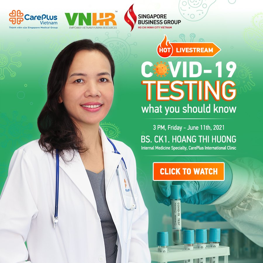 👉👉 Watch the Livestream ‘COVID-19 TESTING | WHAT YOU SHOULD KNOW?’👩⚕ Spearker: Specialist Doctor 1 HOANG THI HUONG (General Internal Medicine CarePlus International Clinic).🕒 Airing at 15:00 on Friday | 11/6/2021🎬 On fanpage CarePlus Clinic Vietnam, Singapore Business Group and fanpage Vietnam Human Resources Association – VNHR