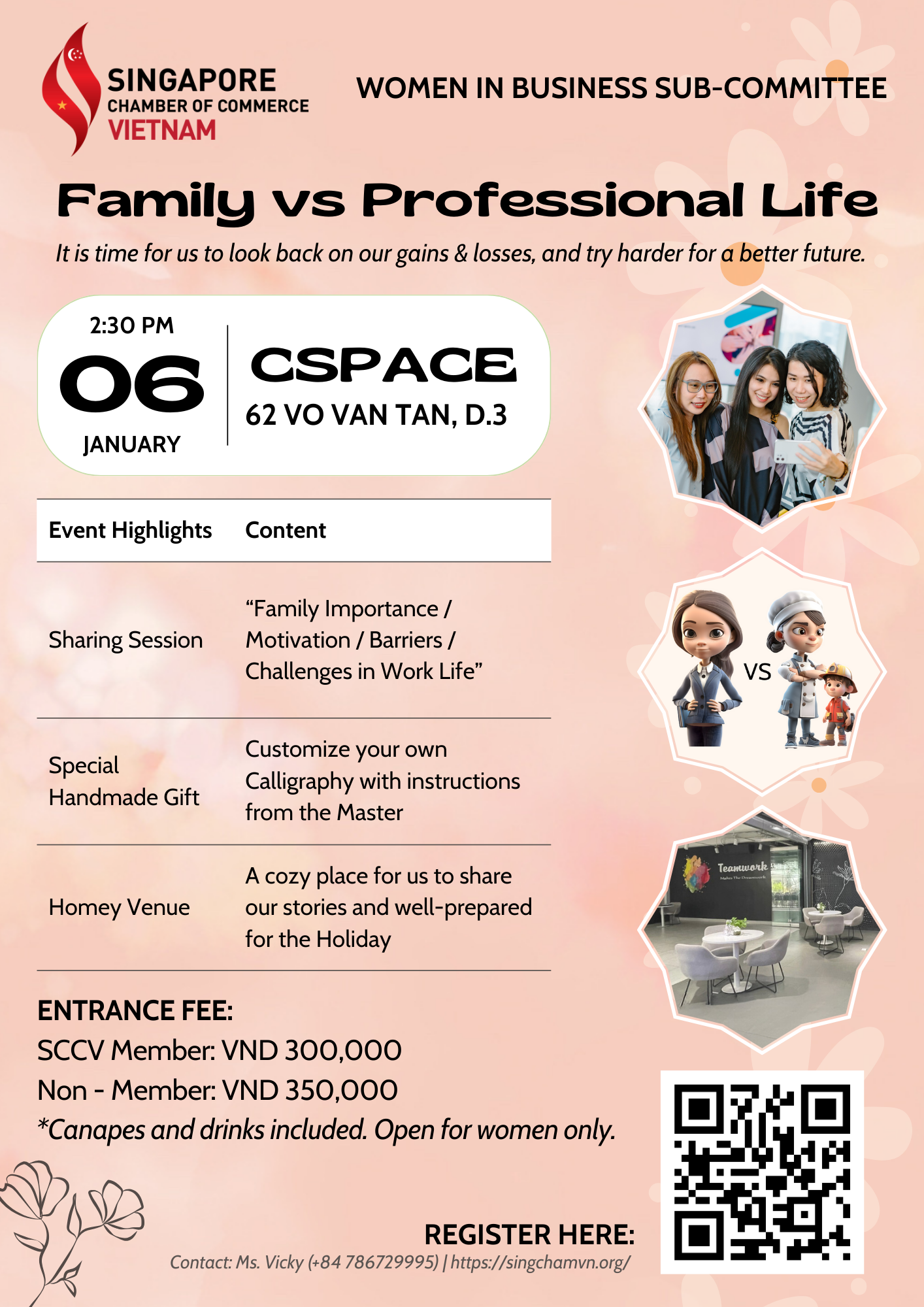 Continuing the success of the first event last month, the “Women In Business” Sub-Committee is excited tohost another activity in January called “Family vs Professional Life”. This is a sharing session among the women who have to balance between their work life and family life.Join us to hear more stories, share experiences, and participate in the mini Calligraphy Workshop!