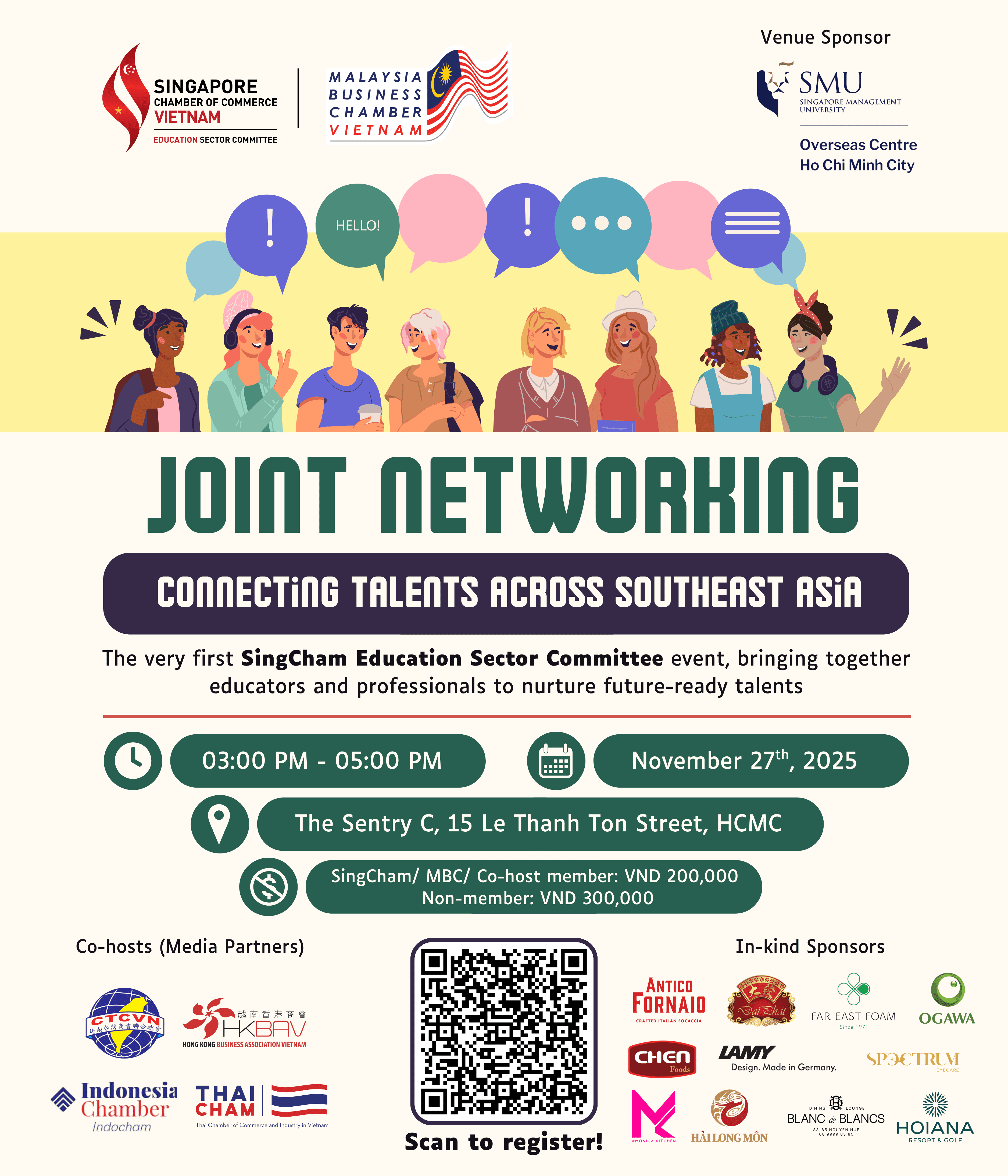 If you have passion and serious interest in contributing to SingCham Vietnam’s community, please email to sccv@singchamvn.org. The Secretariat Team will send you SingCham Vietnam’s Constitution where rights and obligations of Executive Committee Members are eligible for. Nominations close at COB Thursday, February 13th 2025.