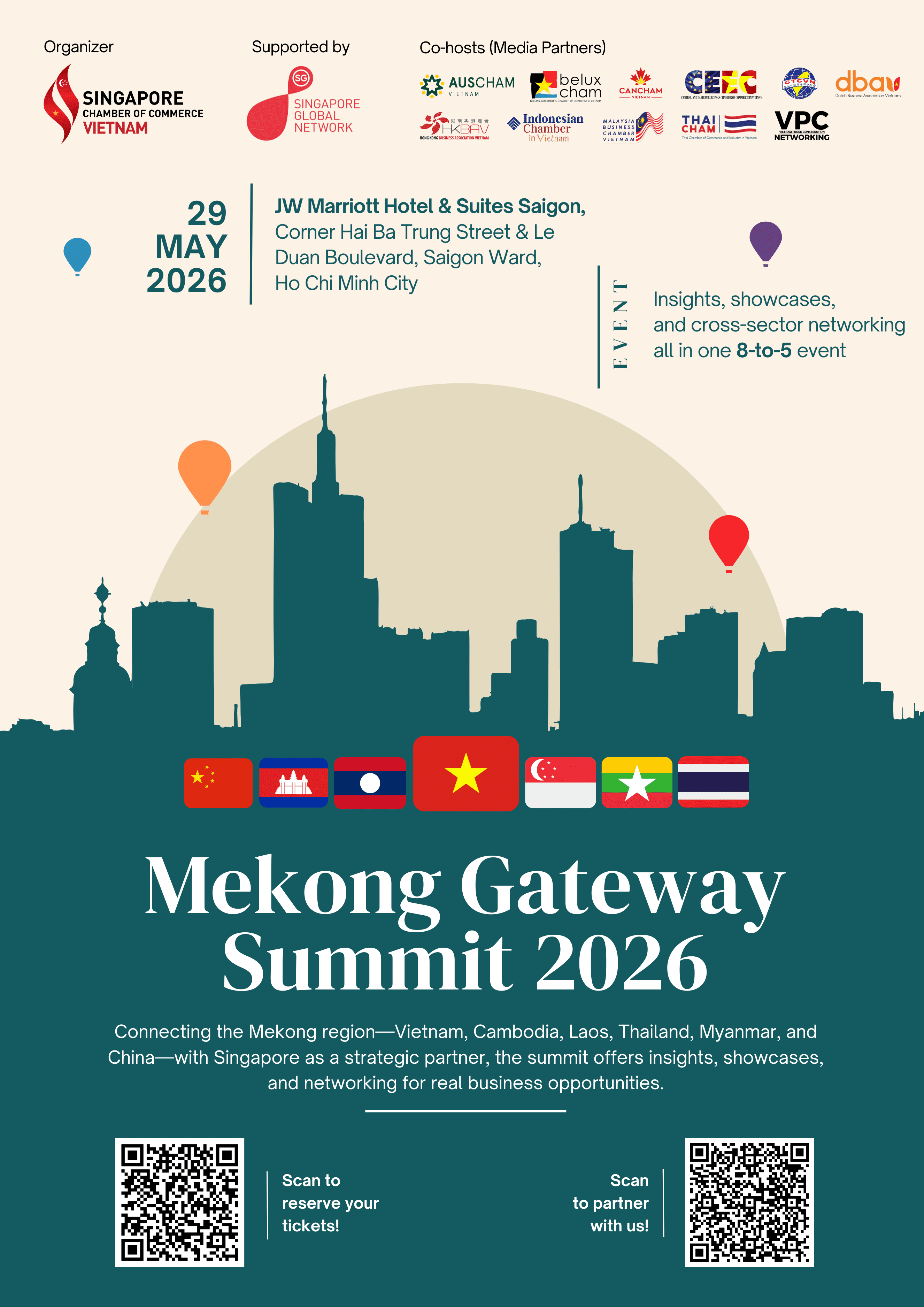 SingCham Mekong Gateway Summit 2026 + Add to Google Calendar + iCal / Outlook export 00 days 00 hours 00 minutes 00 seconds Date May 29 2026 Time 8:00 am - 3:00 pm More Info Read More Category Upcoming events Read More Share this event